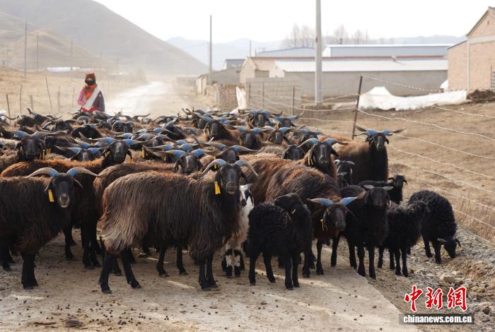 资料图为青海省海南藏族自治州贵南县黑藏羊繁育中心内的拍摄的黑藏羊。 马铭言摄