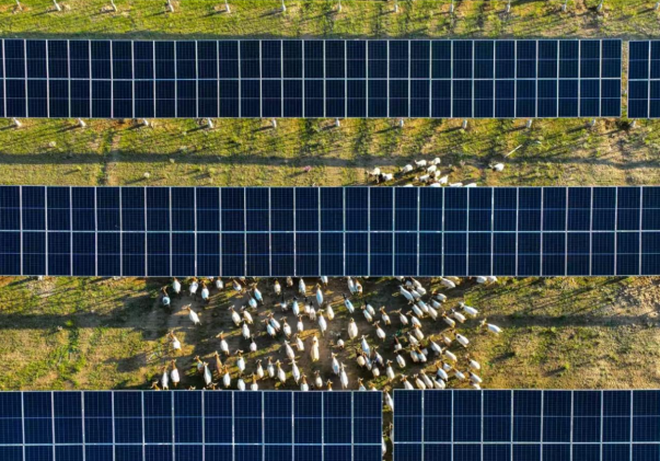 青海省海南藏族自治州共和县塔拉滩光伏发电基地内,连片光伏板错落排布,在高原暖阳下熠熠生辉;板下芳草萋萋,成群牛羊悠然穿梭。这套独具巧思的“光伏+牧业”创新生态发展模式,成功入选联合国可持续发展优秀案例,收获海内外广泛赞誉。